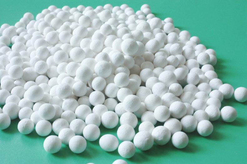 活性氧化鋁干燥劑俗名為鋁膠,是一種及其穩定的新型干燥劑,廣泛用于各種的無熱或有熱再生式吸附干燥機中,在一定的操作條件和再生條件下它的干燥深度高達露點溫度-70℃以下。活性氧化鋁干燥劑、白色球狀、孔分布均勻、吸附水的能力強,具有多細孔,強度高,用水浸泡不變軟、不炸裂、不膨脹、不粉化的特點。